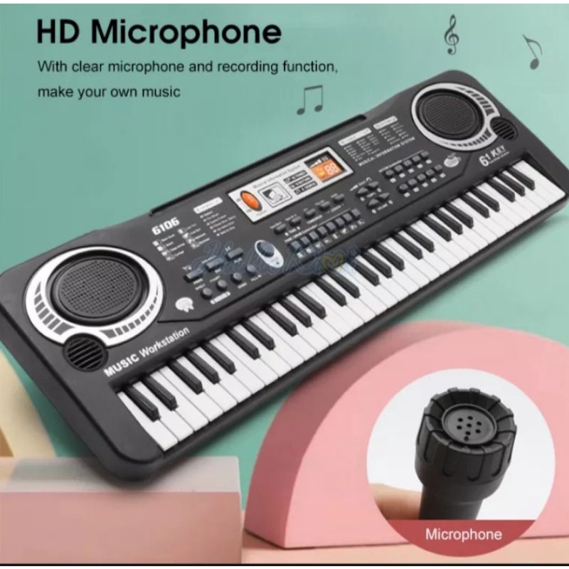 Piano Elektronik 61 Keys / Keyboard Lengkap Mic Dan Charger
