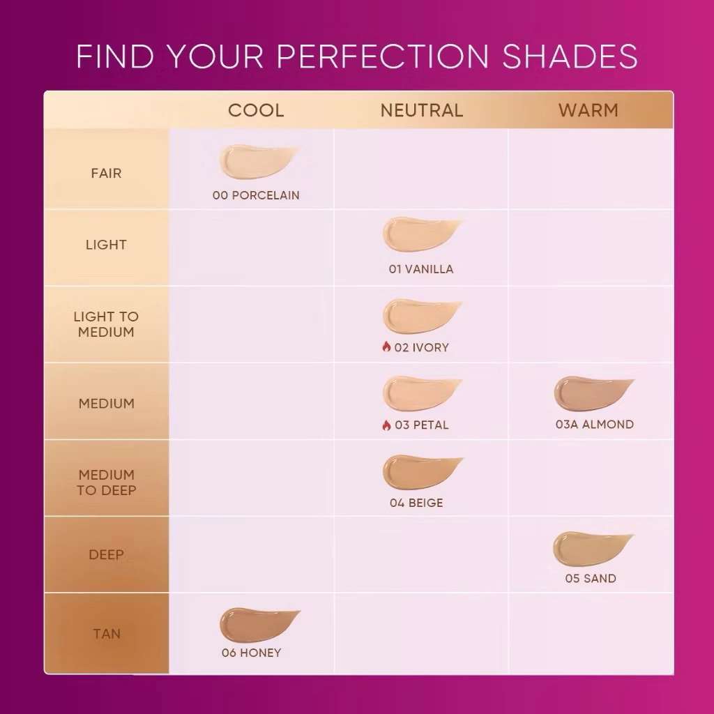 01 VANILLA, 02 IVORY, 03 PETAL, 03A ALMOND, 04 BEIGE