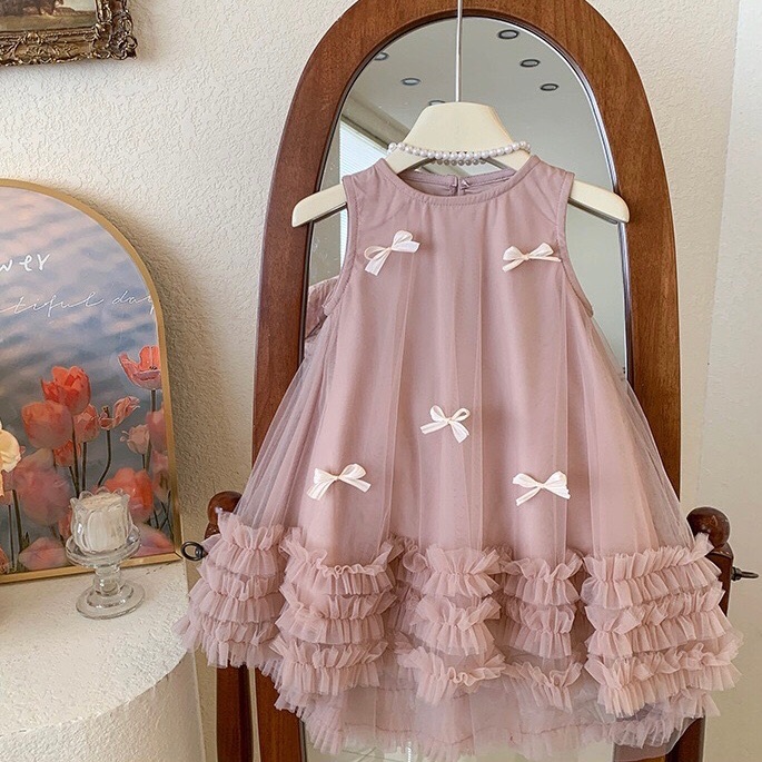 Kirana Dusty Pink Green Kids Dress/ Dress Pesta Simpel Anak
