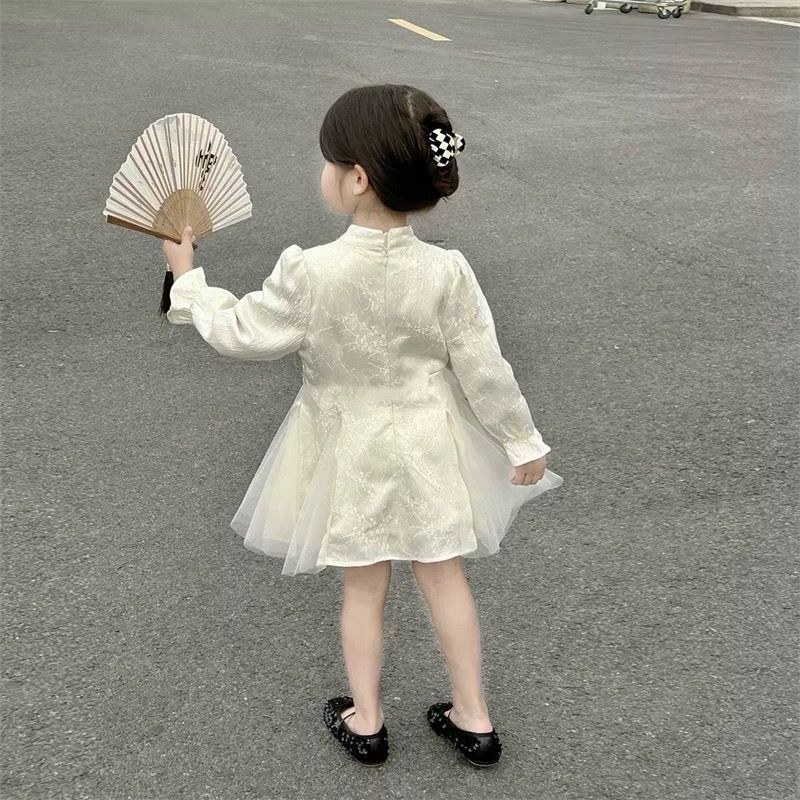 [KIDSFASHIONKOLEKSI] Dress Cheonsam Crinkle Soft Tile Rumbai Assa Ivory Anak Perempuan