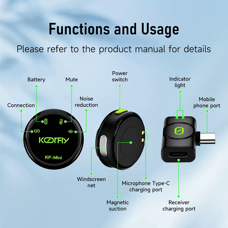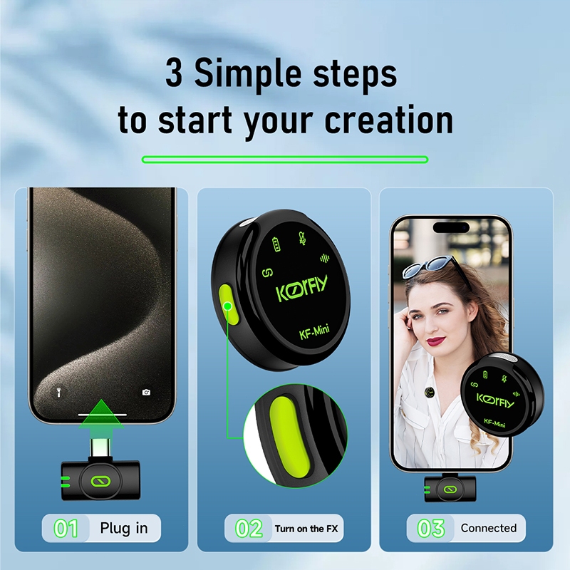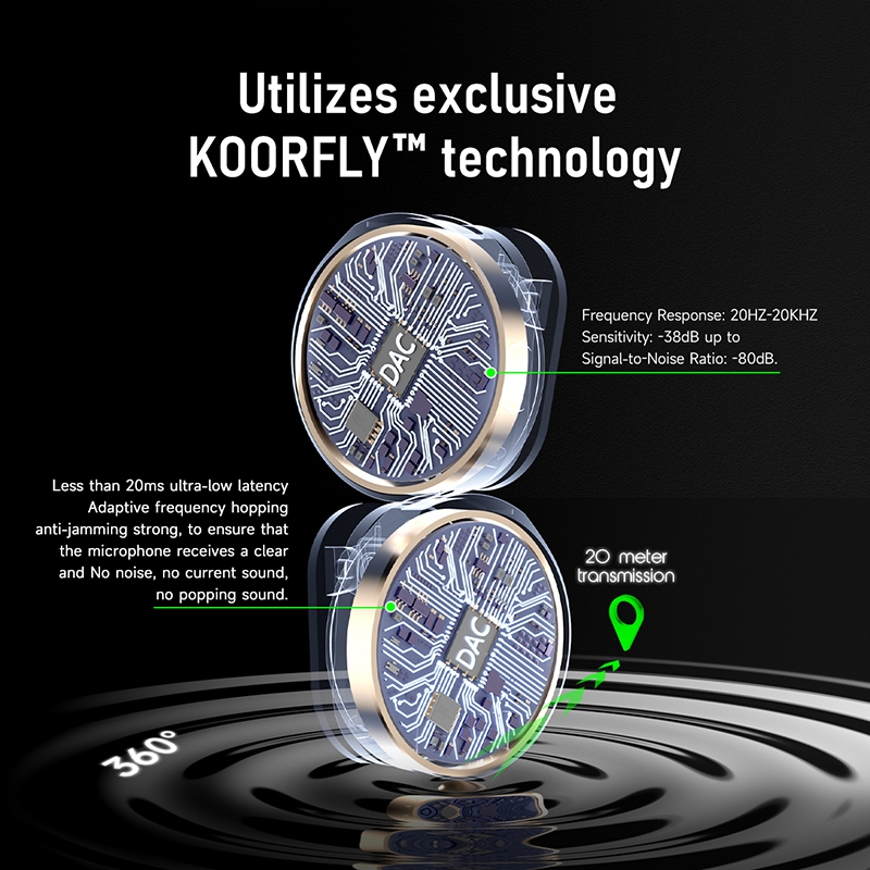 [New MINI Pro] Koorfly Kf-Mini Mic Wireless Clip On Microphone Bluetooth Dual Mikrofon Nirkabel | 40H Battery | Jarak 40