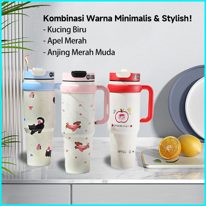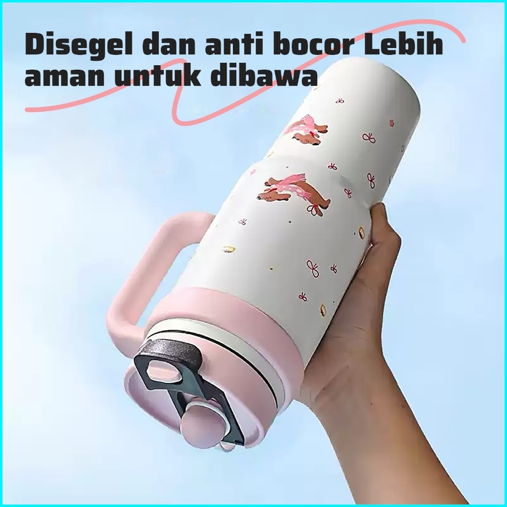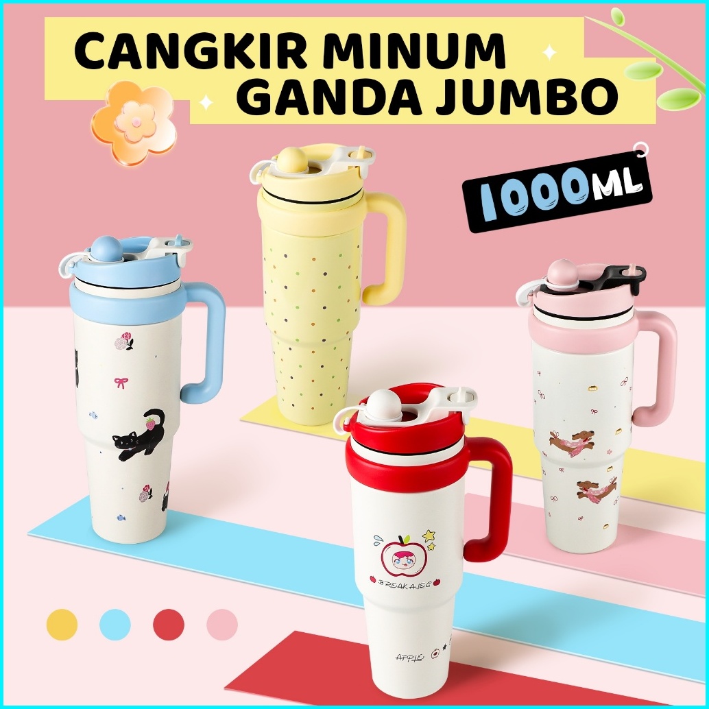 Kokohfit Tumbler Stainless Vacuum 1000ml Portable Thermos Botol Minum Besar Aesthetic Anak Laki Laki Botol Minum 1 Liter