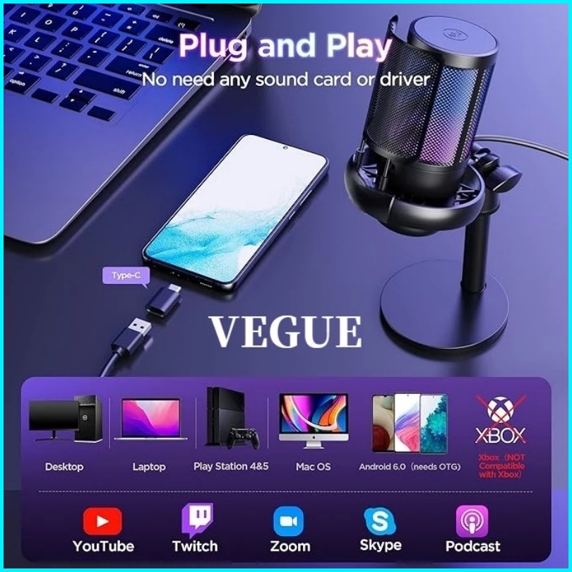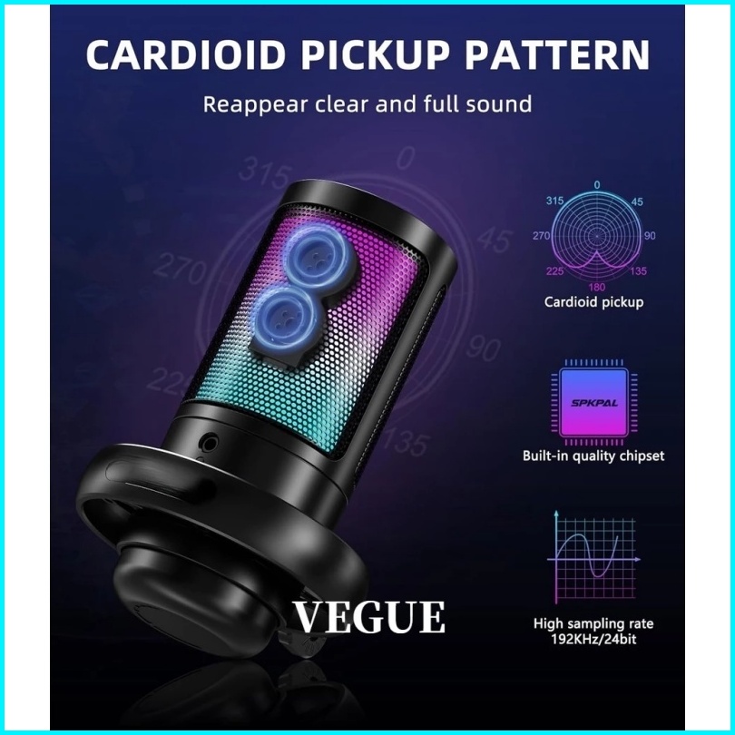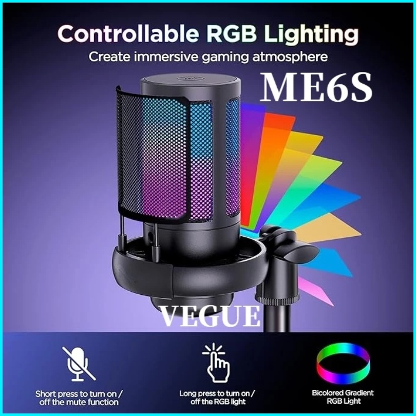 Microphone Condenser Usb Mikrofon Kondensor Studio Rgb Light - Me6s