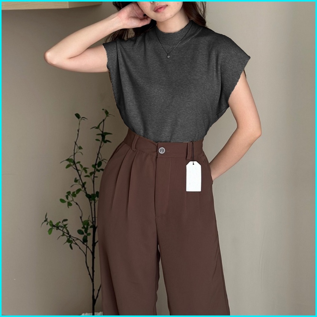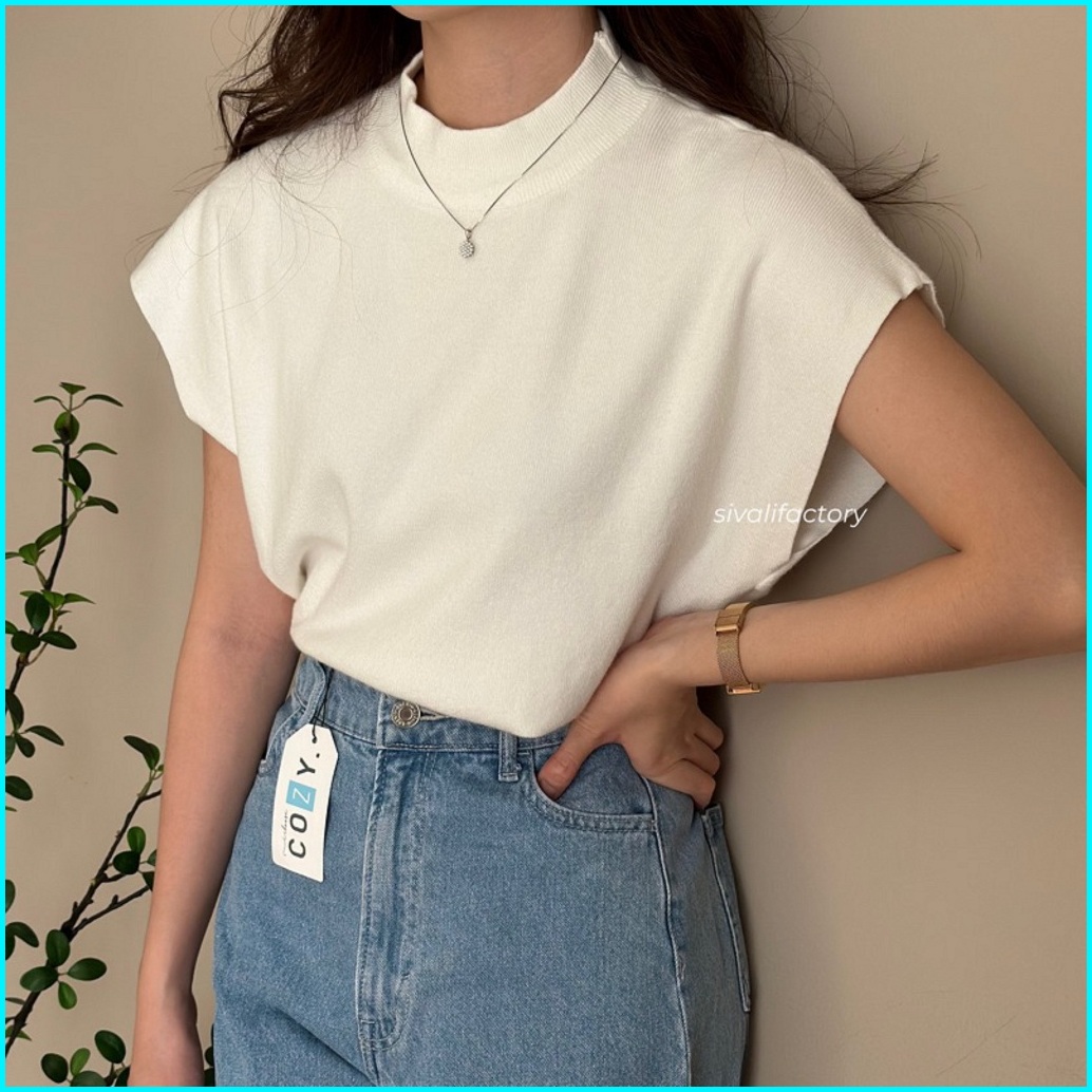 Rose Knit Top Korea Style Atasan Wanita Inner Hijab Baju Vest Knit Turtleneck Tanpa Lengan