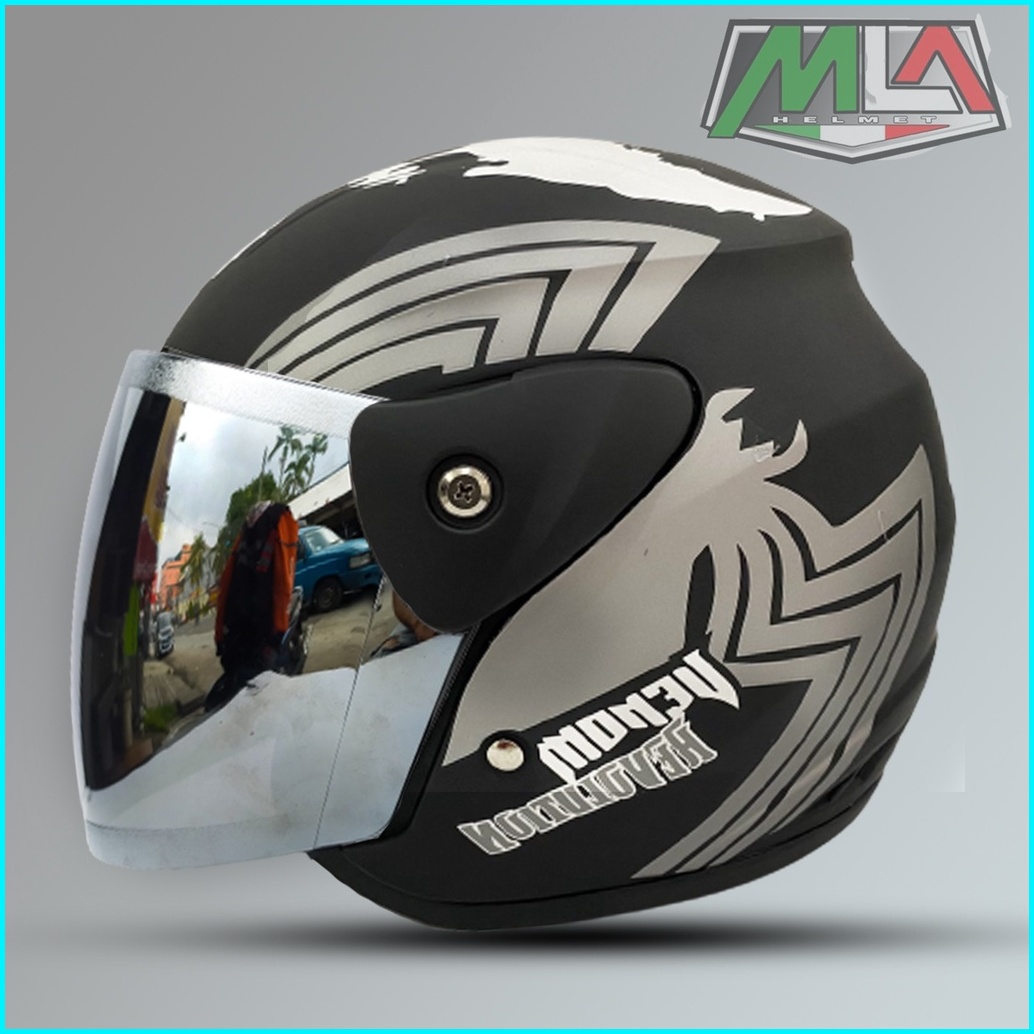 Helm Half Face Evo Evolution Venom Kaca Silver Pelangi - Helm Premium Untuk Pria Dan Wanita Dewasa Sni