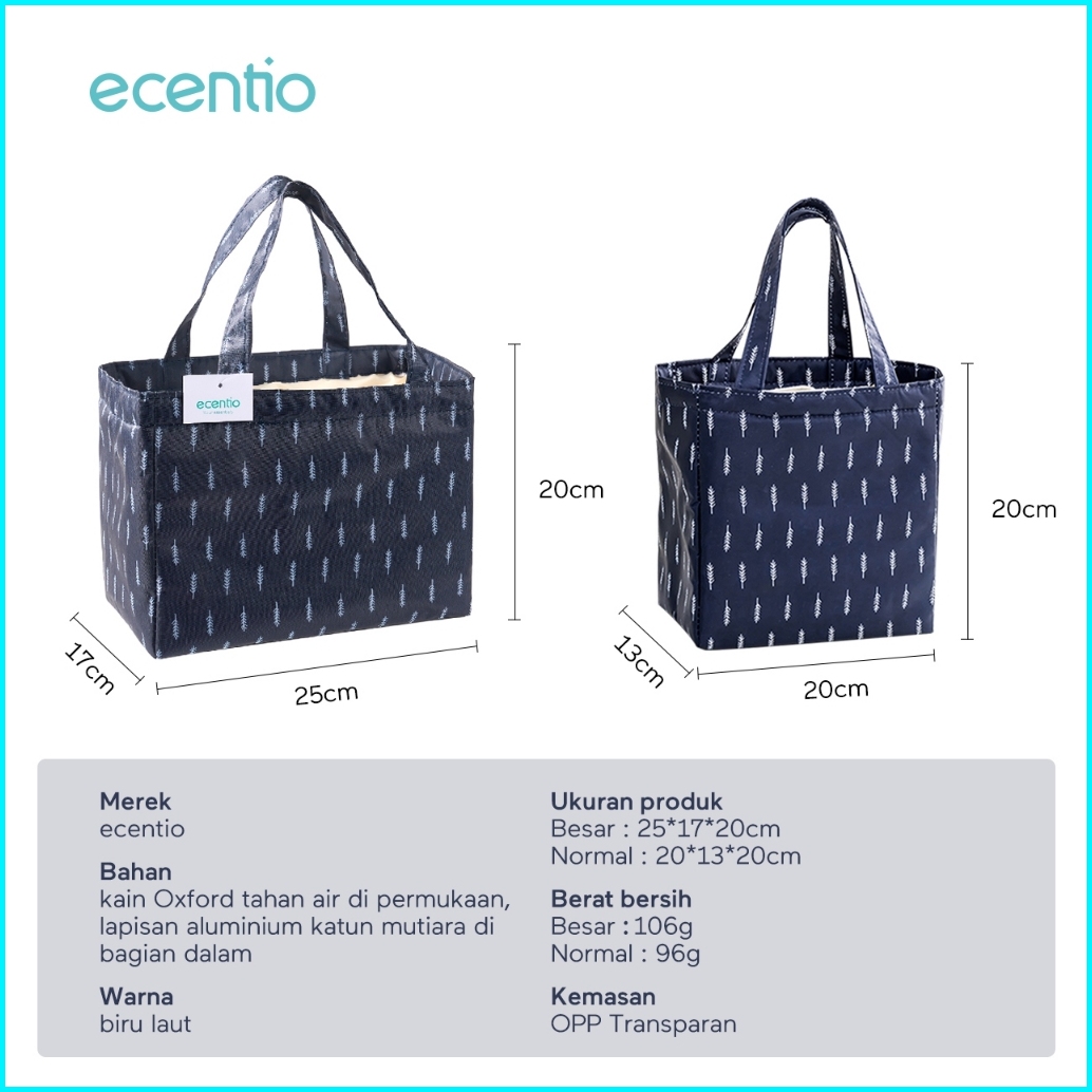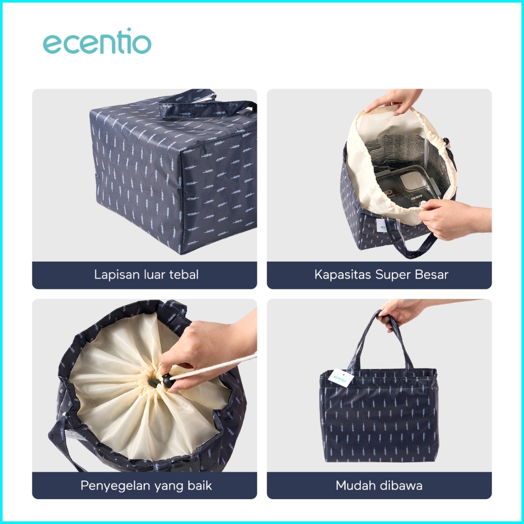 Grosirecentio Kotak Makan Anti Tumpah 3 Grid 1100ml Set Ecentio Tas Bekal Alumunium Foil Lunch Bag Cooler Lunch Bag Wate