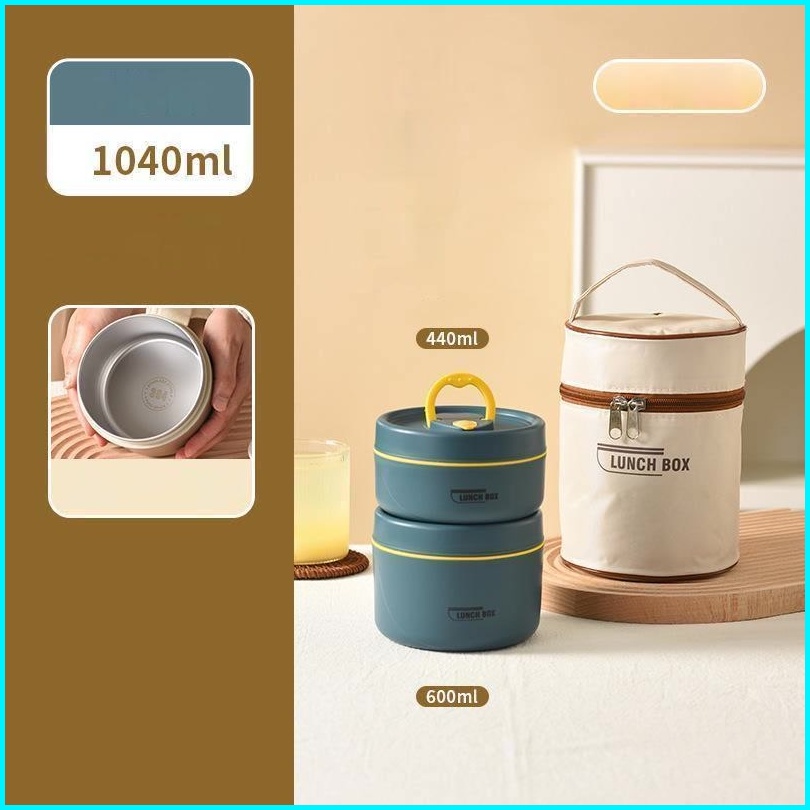 Kotak Makan Portable Tahan Panas Container Sealed Round Stainless Lunch Box Tahan Bocor Tahan Suhu