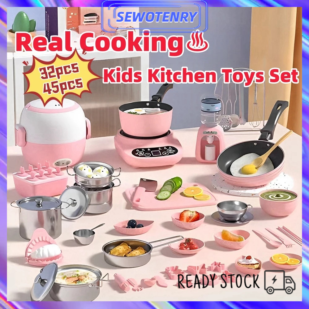 45Pcs Mainan Edukasi Anak Masak Masakan Cooking Mini Kitchen Kompor Listrik Mainan Anak Perempuan