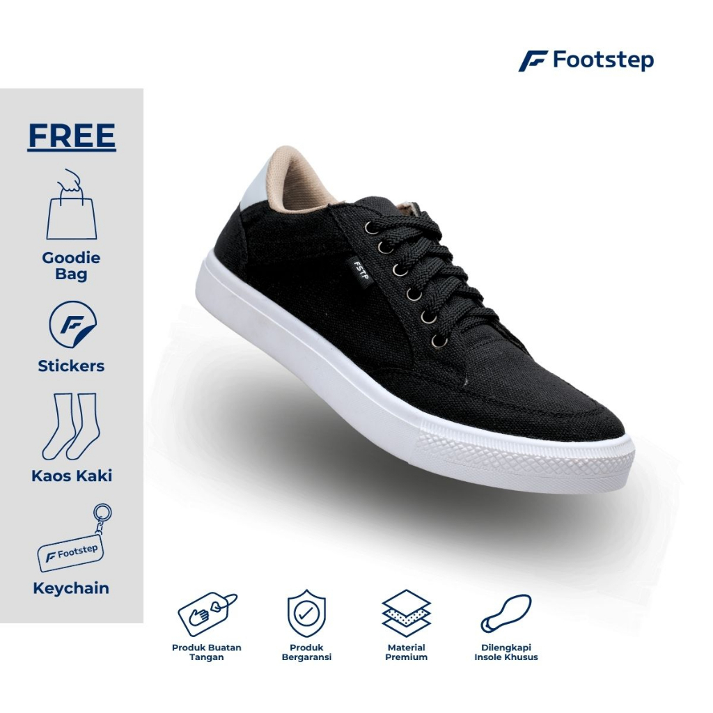 Sepatu Sneakers Pria Casual Footstep Footwear Arka Black