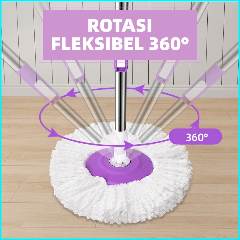 Paus Biru Medan - Set Alat Pel Lantai Stainless Super Mop Dengan Ember Pencuci Putar Rotary Mop 360