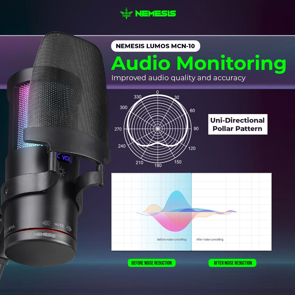 Mic Condenser RGB with Noise Cancelling Nemesis LUMOS MCN-10