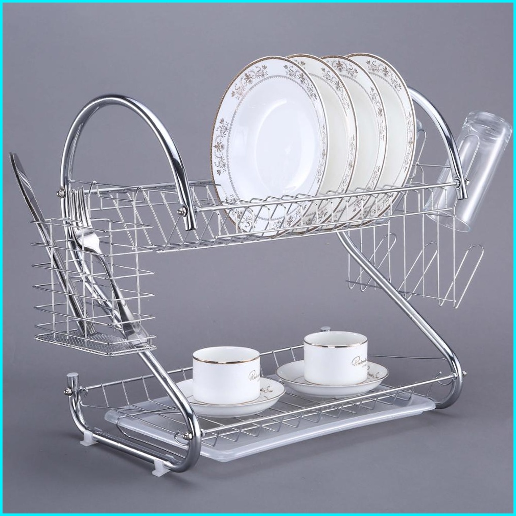 Rak Piring Stainless Untuk Dapur Minimalis 2 Susun Peralatan Dapur Serbaguna 2 Tier Dish Drainer