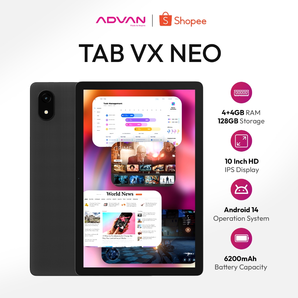 [SPL CICILAN 0 PERSEN] ADVAN Tab VX Neo | Dual SIM Card 4G LTE | 4GB+4GB/128GB | 10.1" IPS Screen | 6200 mAh | Android 14 | Garansi Resmi 1 Tahun