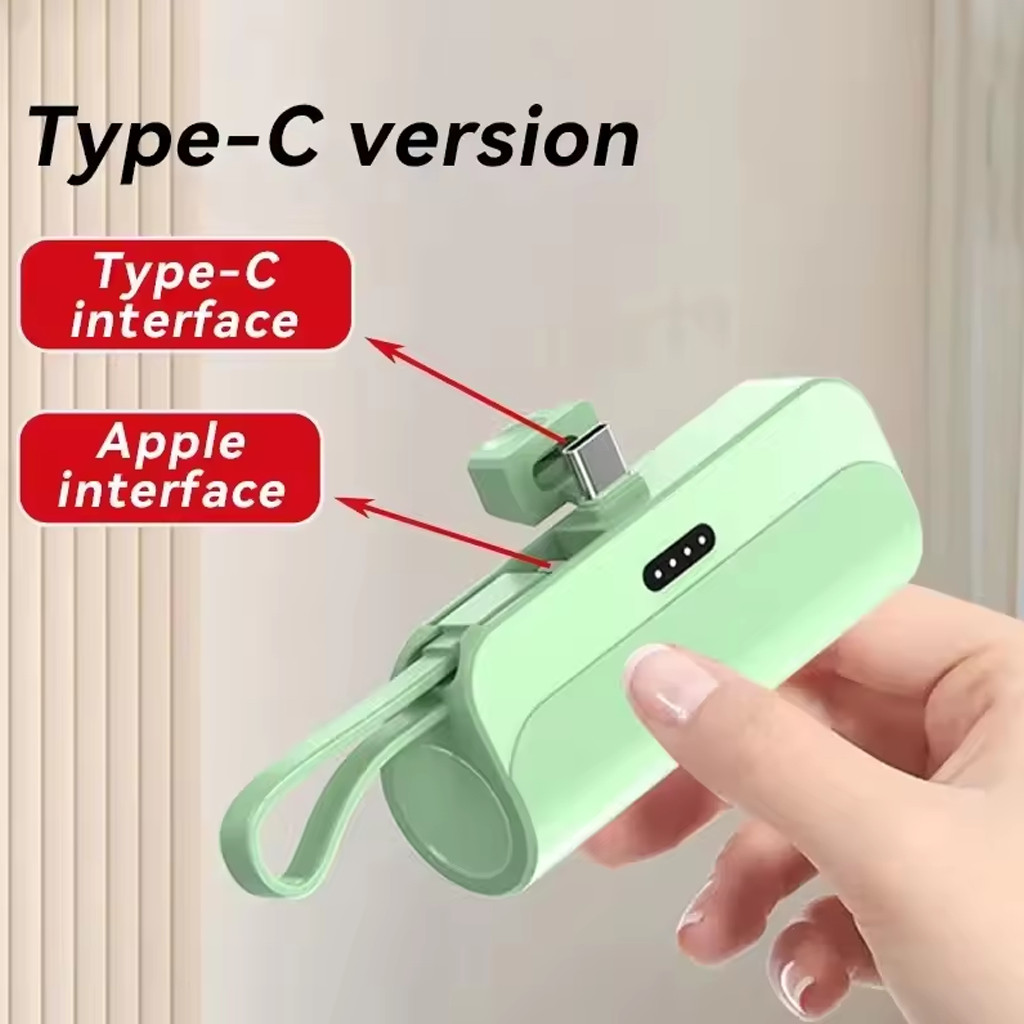 TBB WER LIGHTNING+TYPE-C 2IN1 5000MAH RTABEL MINI BAWAAN DAYA KABEL PD20W SUPERFAST PENGISIAN TIPE-C R1412