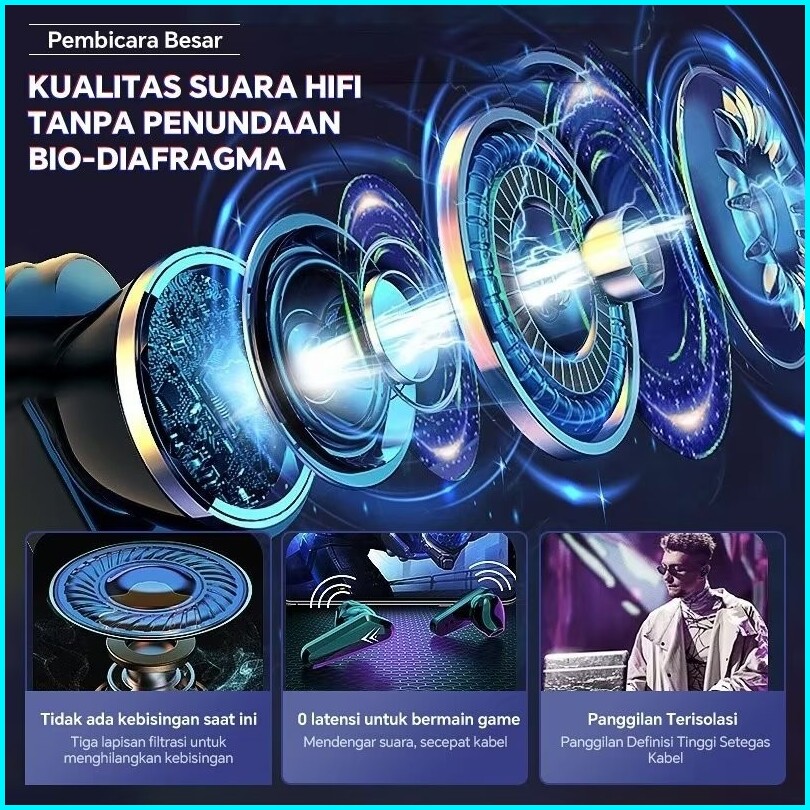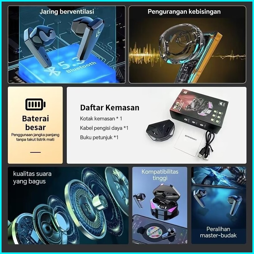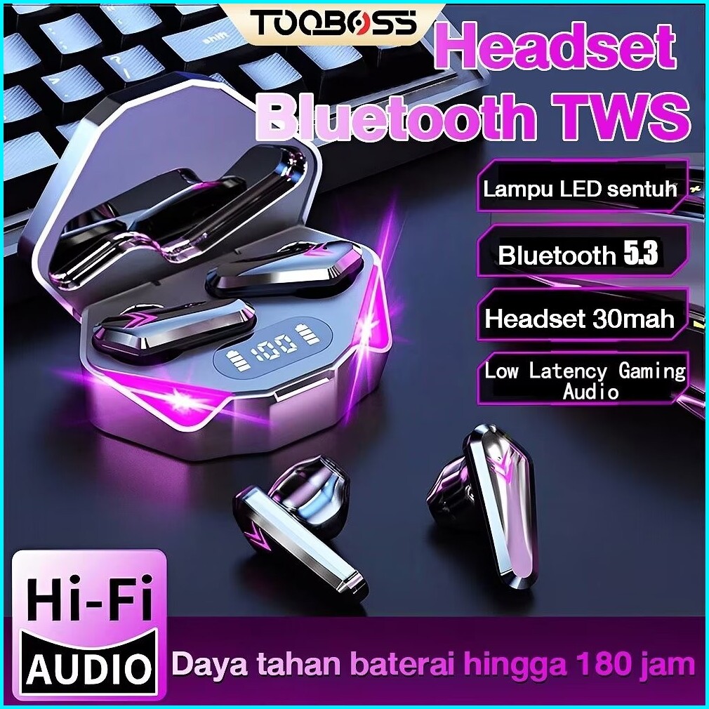 Headset Bluetooth 5.3 Earbud Tws Nirkabel Led Digital Power Display Stereo With 5000 Mah Powerbank
