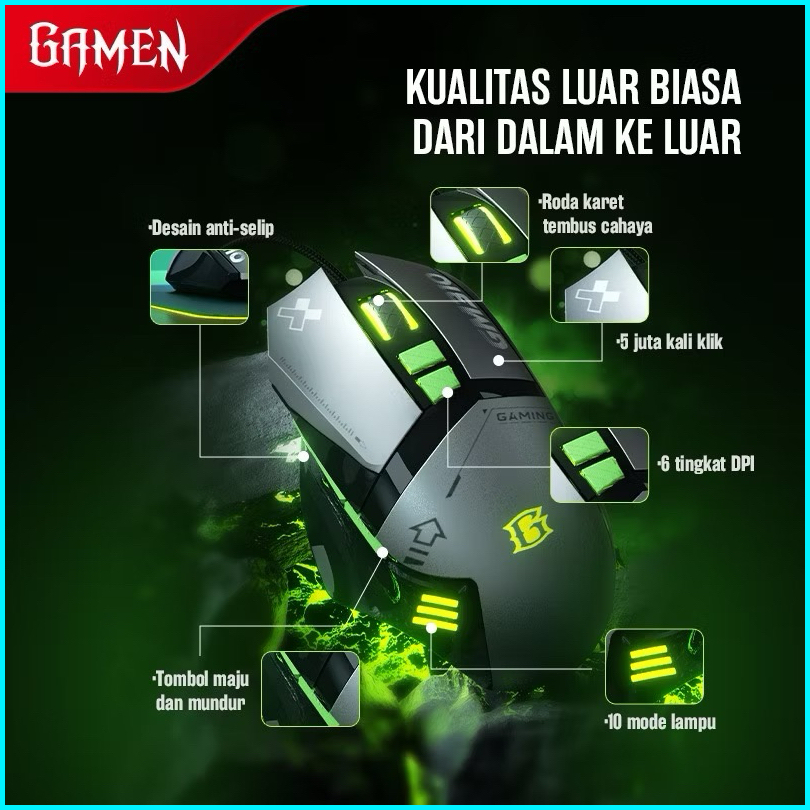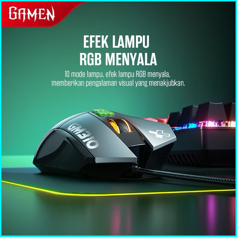 Gamen G310 Mouse Gaming Rgb Light 10 Mode 7200 Dpi With 6 Macro Button Original Mouse Komputer Laptop Pc