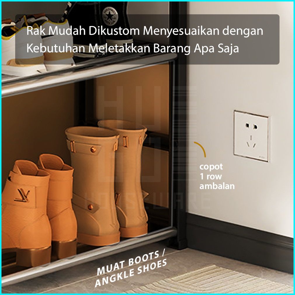 Rak Sepatu Stainless Steel Portable Tempat Sepatu Sandal Minimalis 4 Susun Dan 5 Susun Hugo