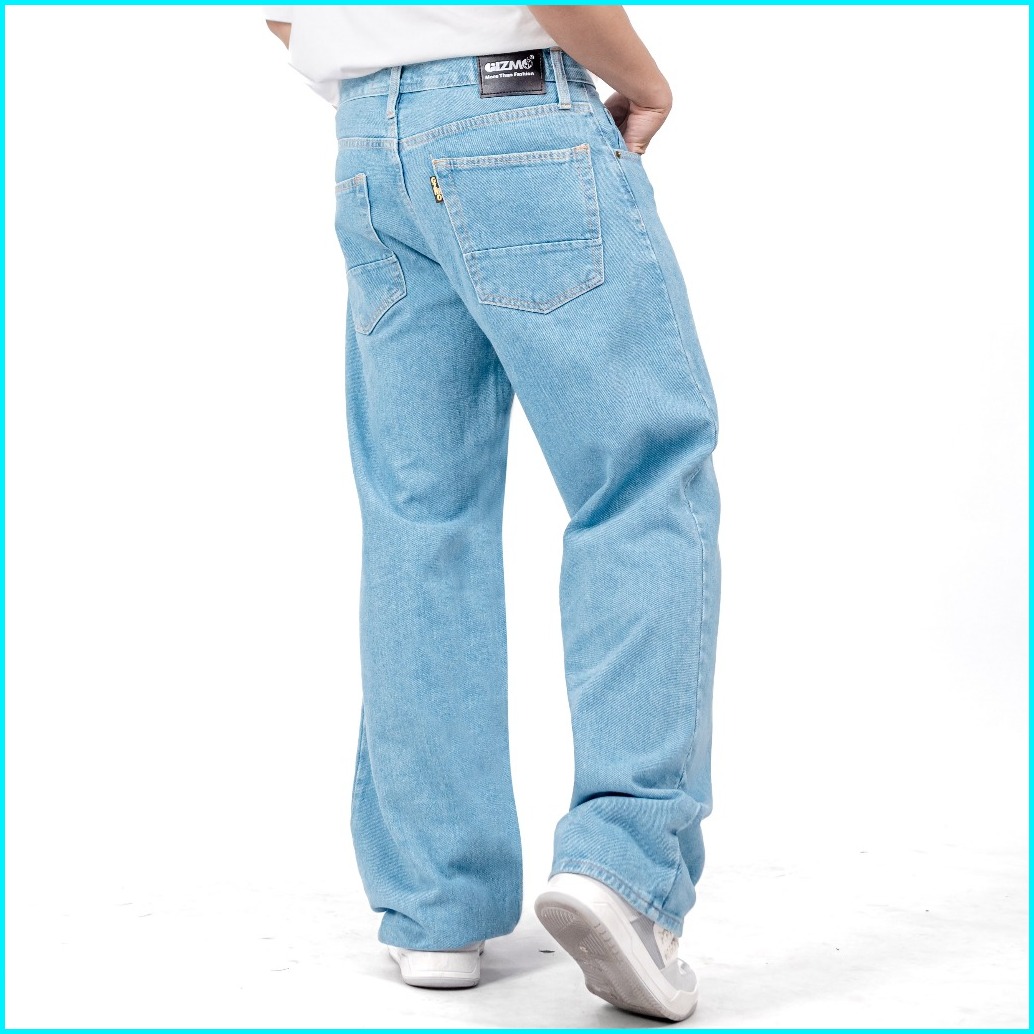 Gizmo - Celana Jeans Wide Leg Wisker Lebar Gombrong Skena Bioblitz Pria Loose Fit Jumbo Big Keren Bahan Denim