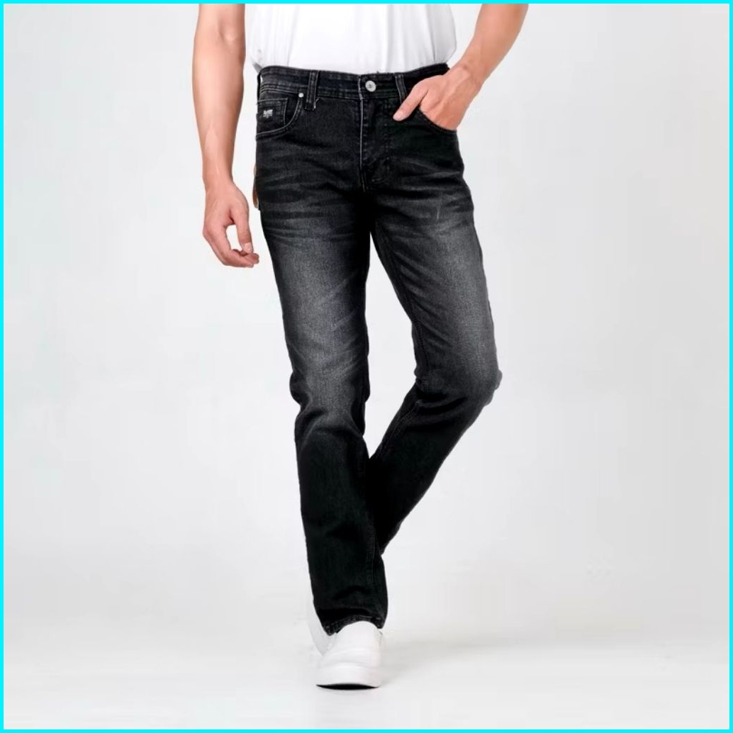 Celana Jeans Pria Panjang Slimfit Skinny Wisker Hitam Blackjazz Denim Premium