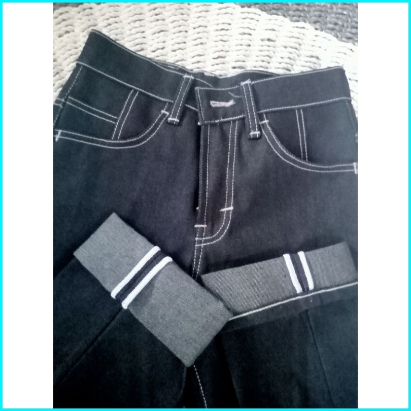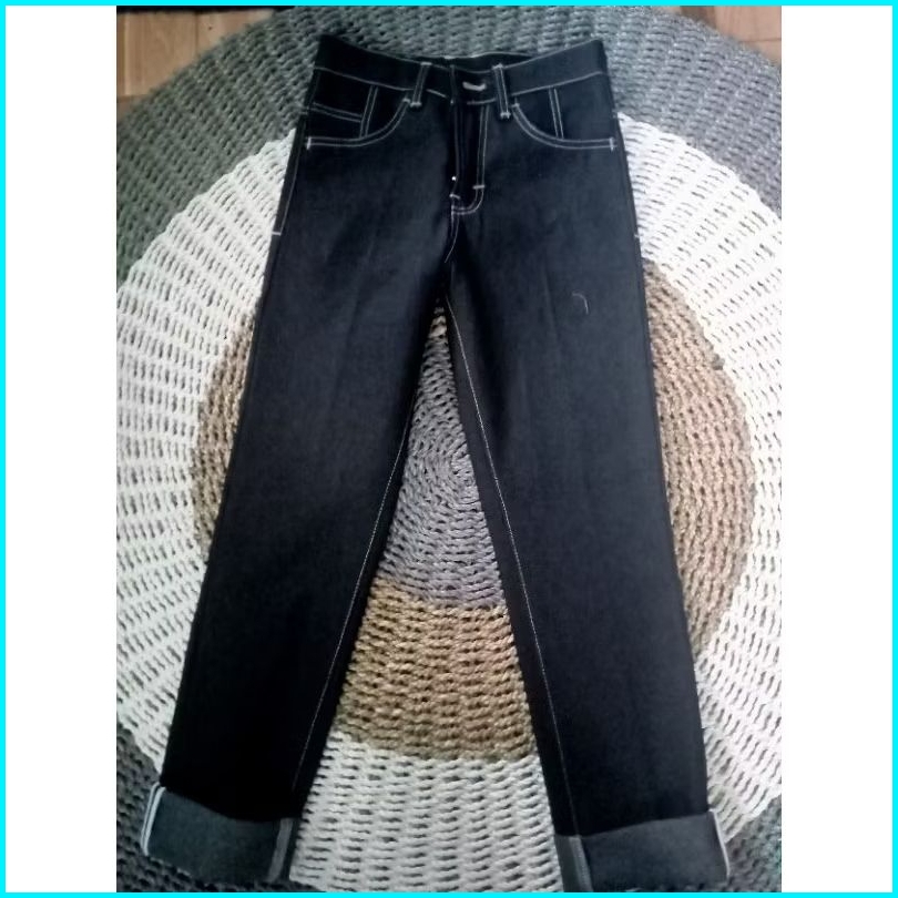 Celana Denim Selvedge Accent 15 Oz Black Indigo Bahan Raw Denim Bisa Feding