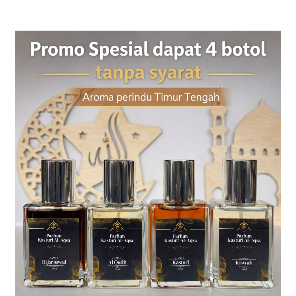 Kasturi Al Aqsa Paket Aroma Perindu Tanah Suci Makkah Madinah dapat 4 botol ukuran Besar
