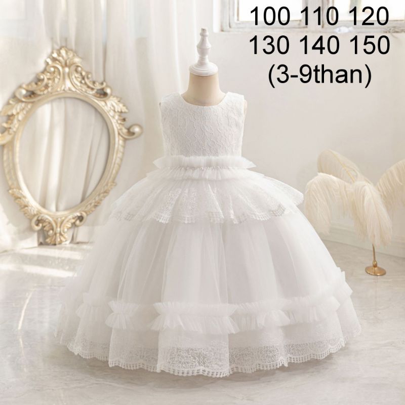 Dress Pesta Anak White Floral Ruffle Renda Brokat