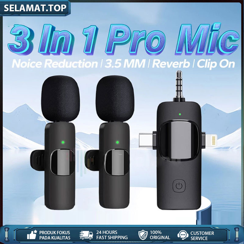3 In 1 Pro Mic 3.5mm Mikrofon Nirkabel Lavalier Mic Portabel Audio Video Pembuatan Rekaman Wireless Microphone HP Clip o