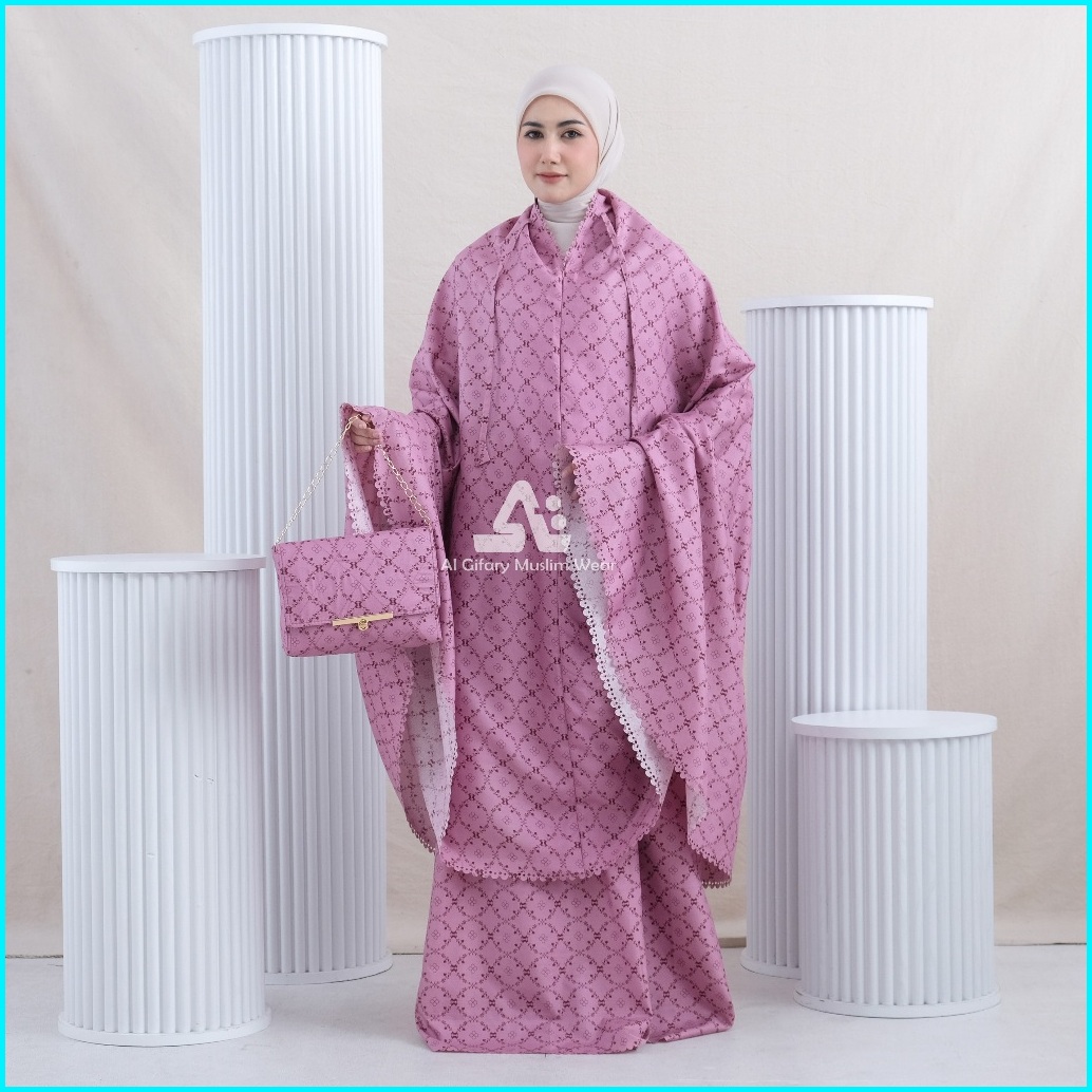 Mukena Dewasa 2in1 Motif Lasercut Print Katun