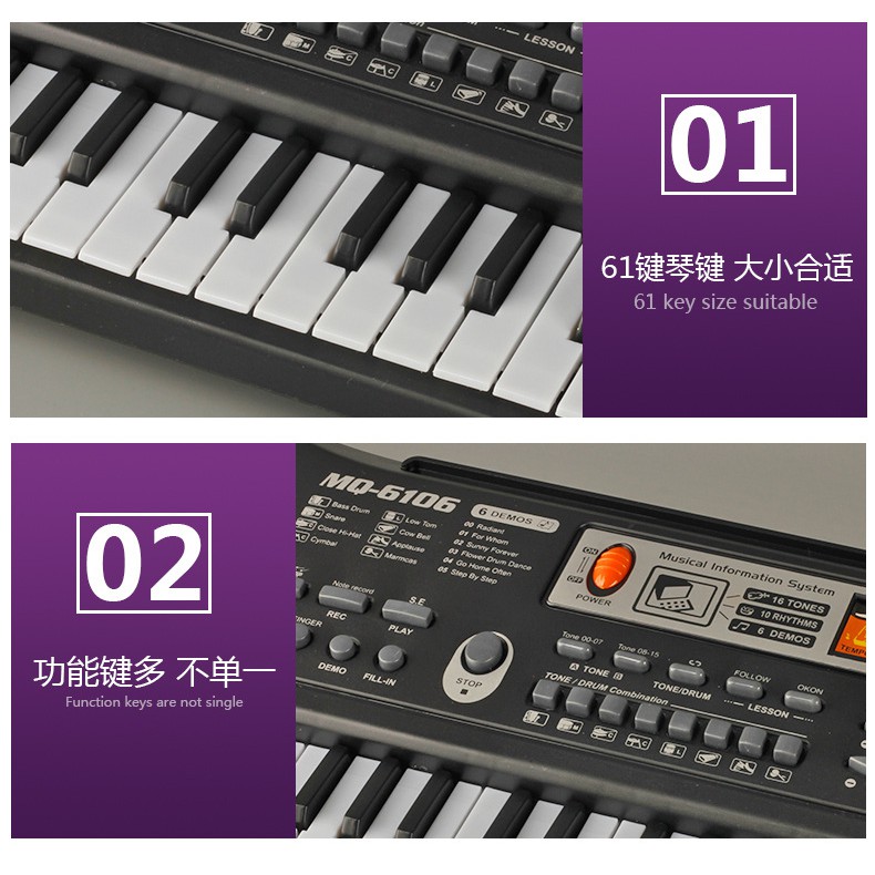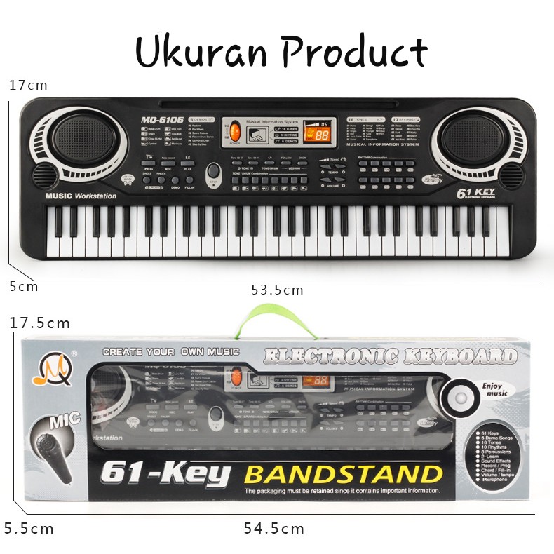 Mainan Anak Piano Elektronik 61 Keys / Keyboard Electronic 61 Keys Lengkap Mic Dan Charger