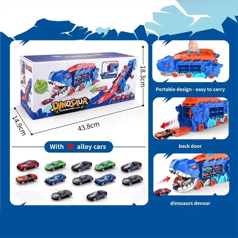 Mainmain (Free 12 Mobil) Kendaraan Mainan Mobil Truk Dino Deformasi Mainan Truk Dinosaurus Dinosaur Deformation Cars Mai