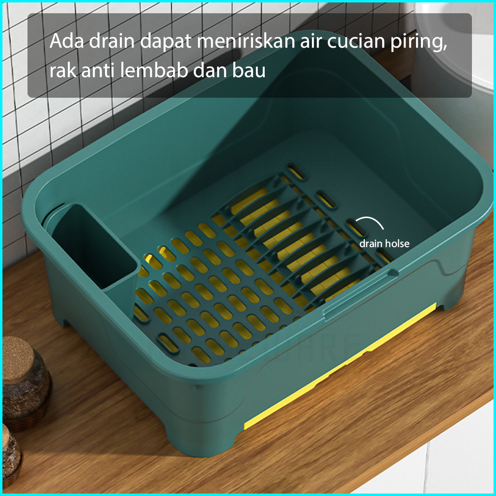 Rak Piring Dengan Tirisan Air Rak Dapur Multifungsi Tempat Penyimpanan Alat Makan Piring Mangkuk Sendok Sumpit Garpu Hug