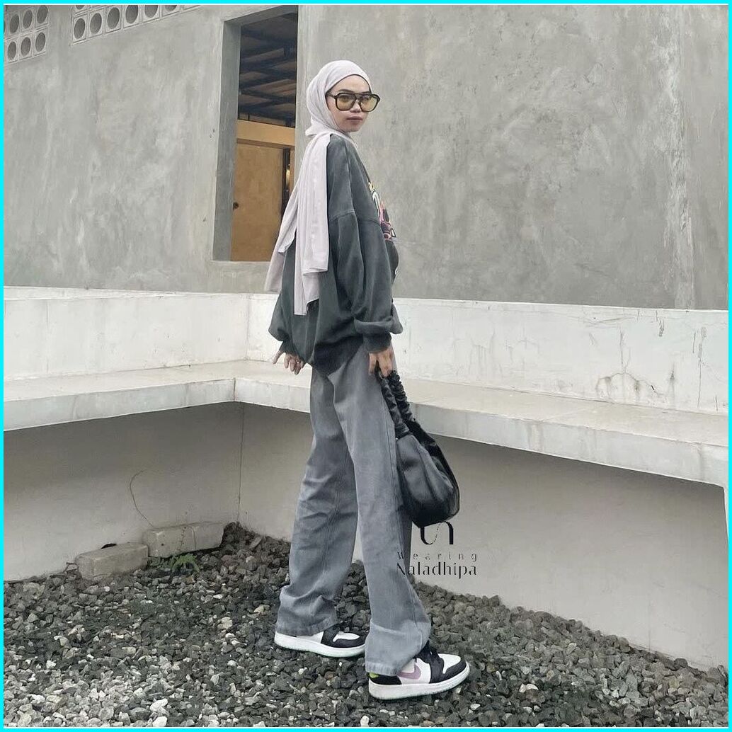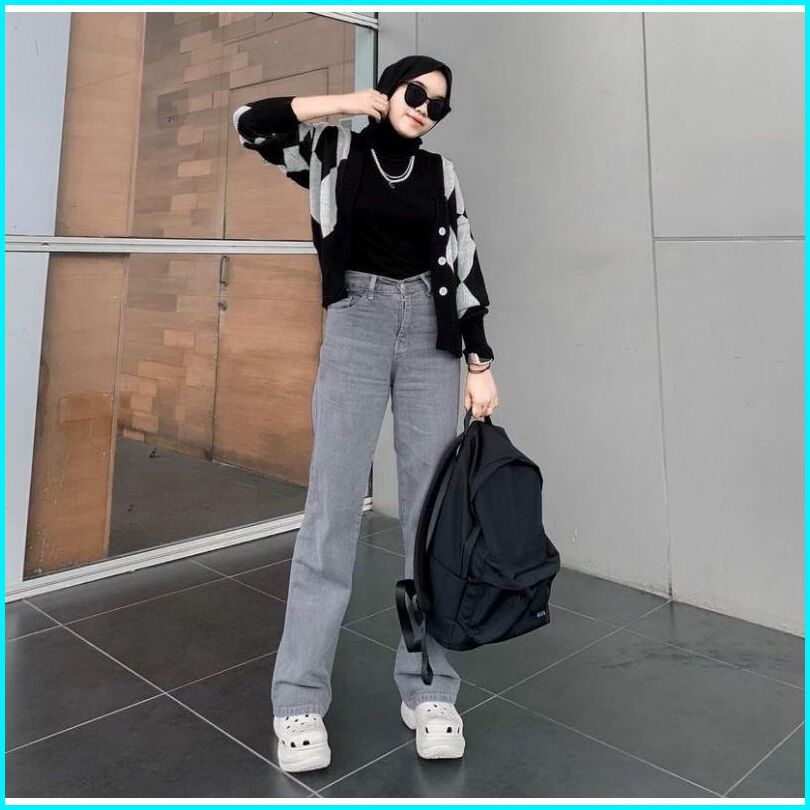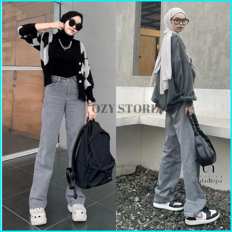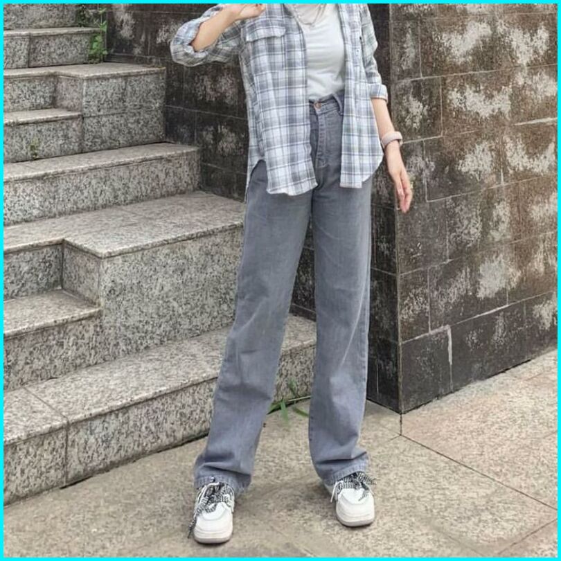 Celana Jeaans Wanita Highwaist Kulot Jeans Pinggang Yang Dapat Diisesuaikan