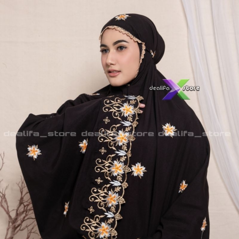 DEALIFA Mukena Dewasa Bunga Sakura Katun Premium Full Bordir Terbaru