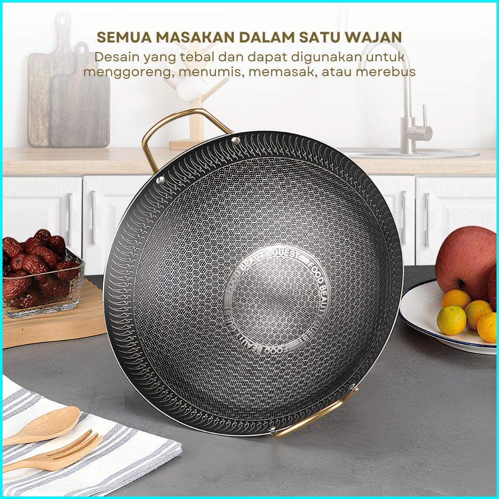 Sunland Wajan Penggorengan Stainless Anti Lengket Set 3 Ukuran Dengan Pegangan Kuali Premium Quality