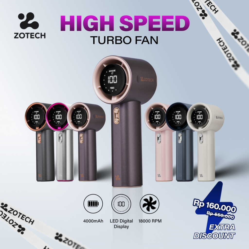 ZOTECH ZT-01 Kipas Angin Mini Portable Turbo 100 Gear Wind Speed 18000RPM Kipas Tangan Genggam