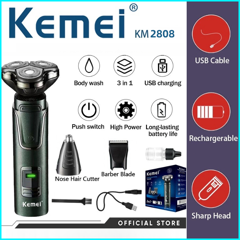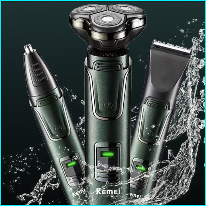 Kemei 3 In 1 Alat Cukur Listrik Alat Cukur Cukur Listrik Pemangkas Rambut Hidung Isi Ulang Jenggot Wajah Pemangkas Rambu