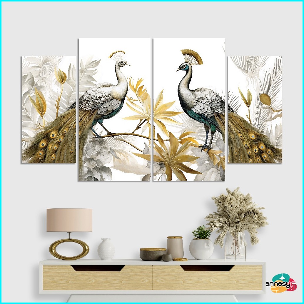 Tennesy Hiasan Dinding Aesthetic 1 Set Peacock Abstract 4 Panel 70x40cm Wall Decor Pajangan Kamar