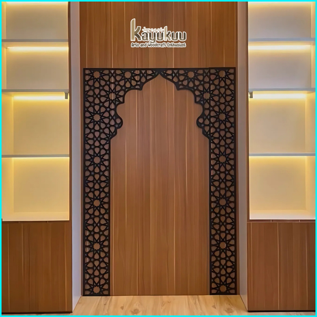 Kreasikayukuu Mihrab Mushola Aesthetic Hiasan Dinding Mushola Bahan Kayu Plywood 3mm