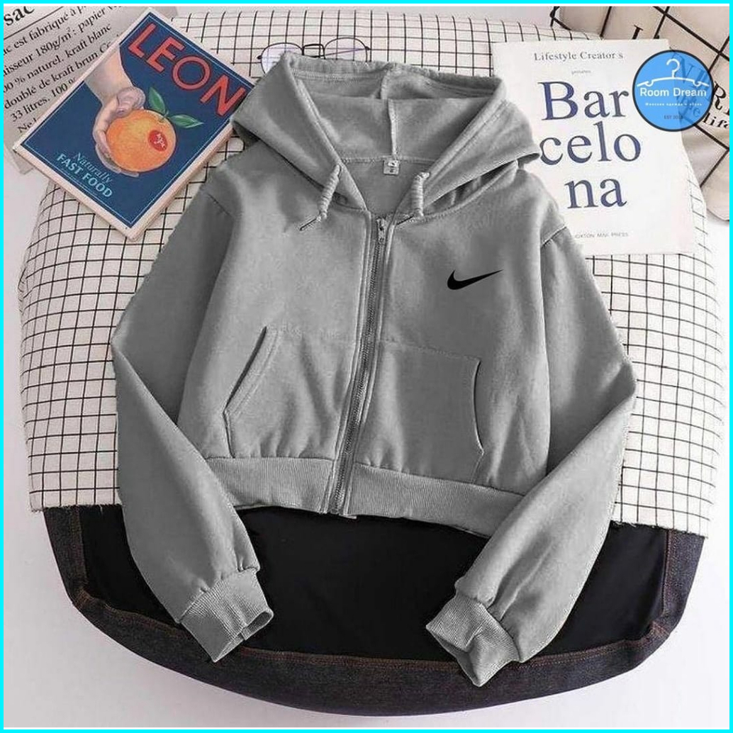 Bordir Jaket Croope Nk Hoodie Zipper Sweater Wanita - Jaket Crope Wanita