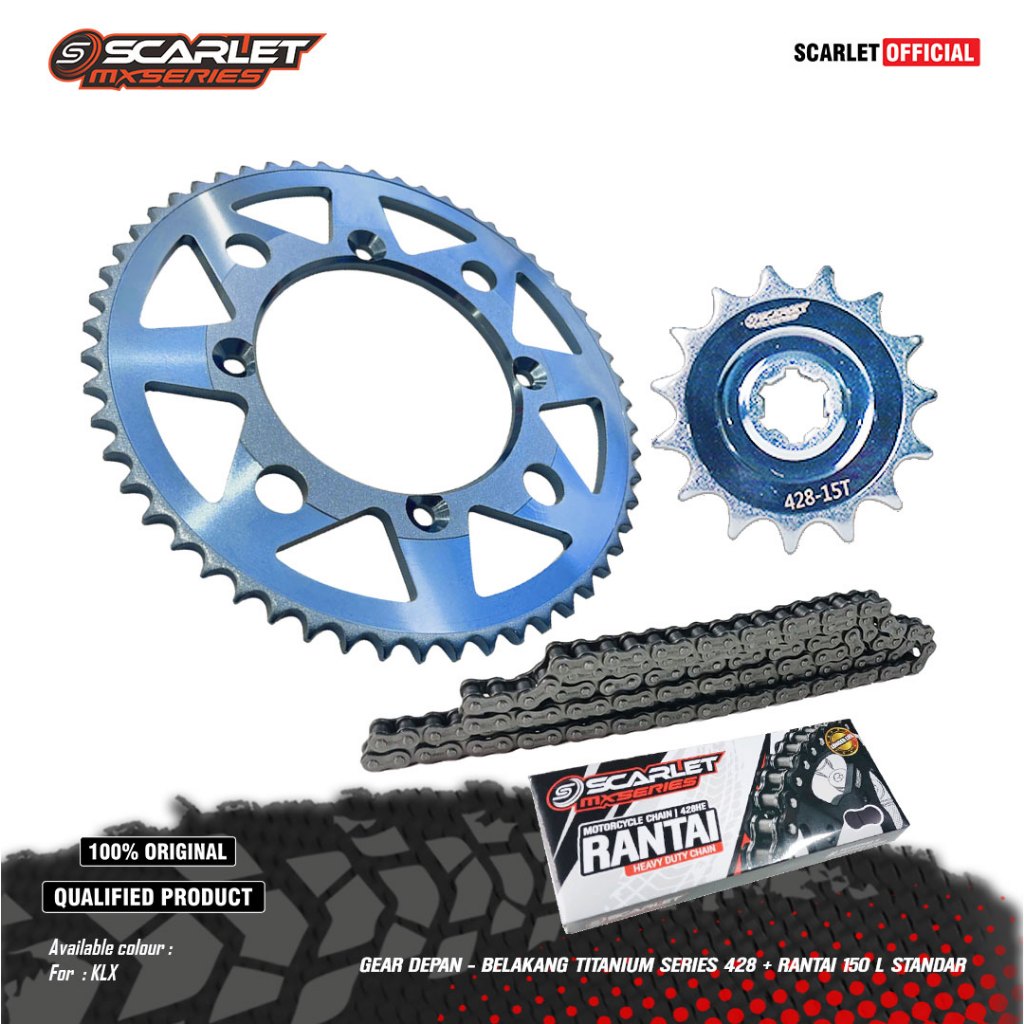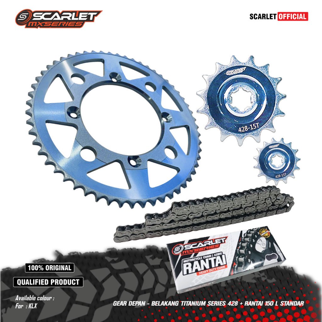 Scarlet Racing - Gear Gir Set Depan Belakang Titanium Series KLX 428 Plus Rantai Standar 150 L