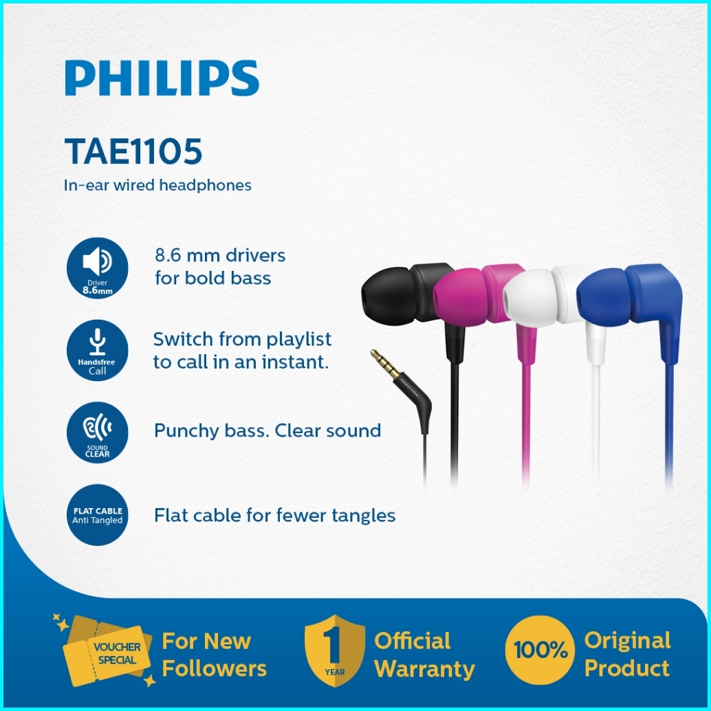 Philips Tae1105 In-ear Wired Headphones Earphone Tae 1105