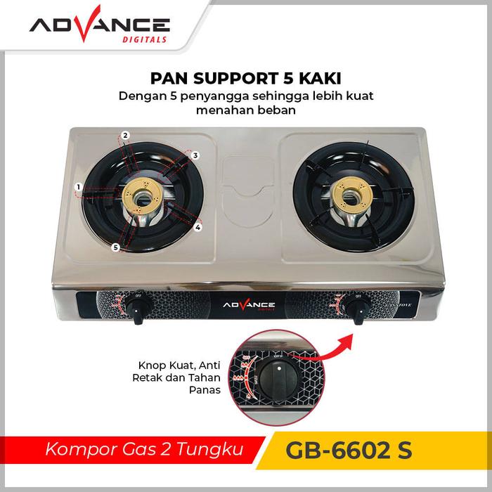 Kompor Stainless Advance GB-6602S 2 Tungku