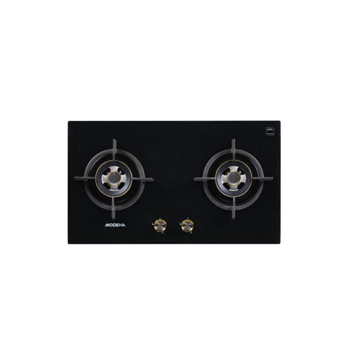 Modena kompor gas tanam BH 2725 GABK GBBK - 2 tungku - Kaca Hitam Kayu