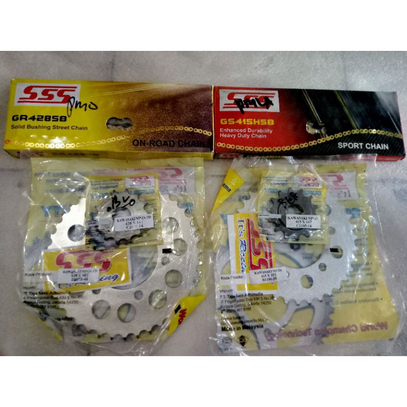 Gear Set SSS 428 / 415 HS Ninja 150 R / RR / SS dan rantai 130 gold