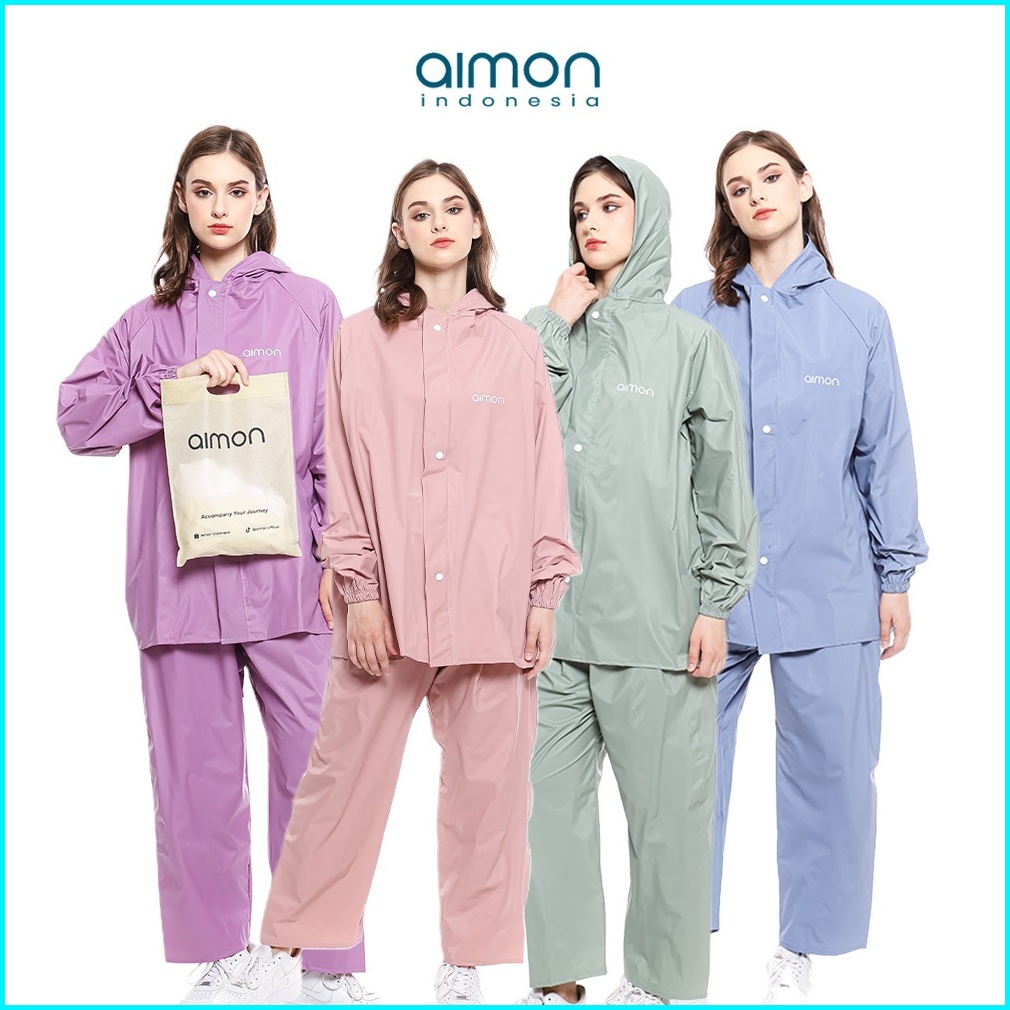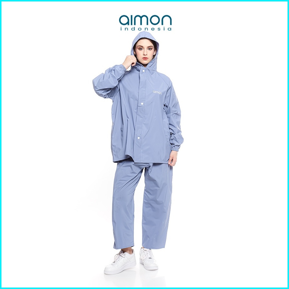Jas Hujan Pria Wanita Setelan Jaket Celana Dewasa Pvc 0.25 Tebal Elastis Anti Air Aimon