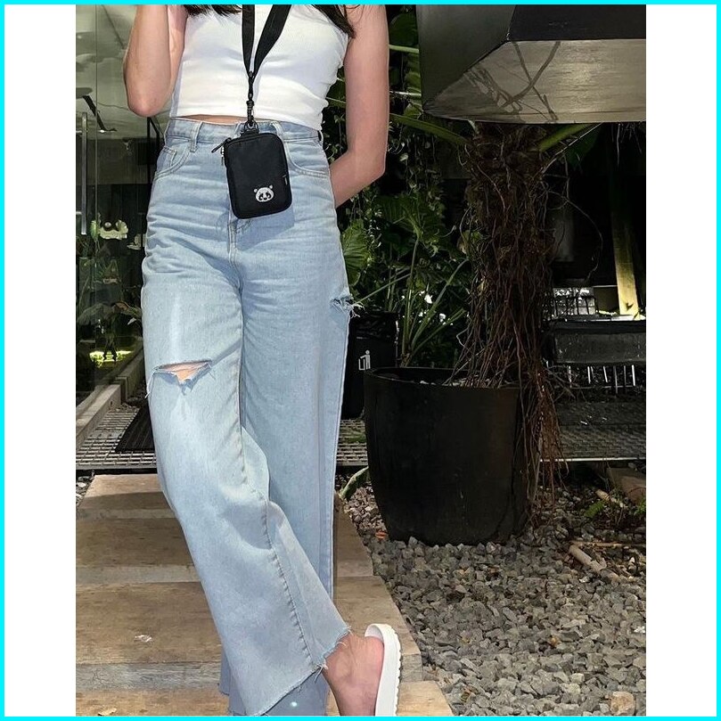 Highwast Kulot Jeans Wanita Sobek Lutut Paha Kaki Unfinised Kulot Jeans Wanita Terbaru Korean Luck