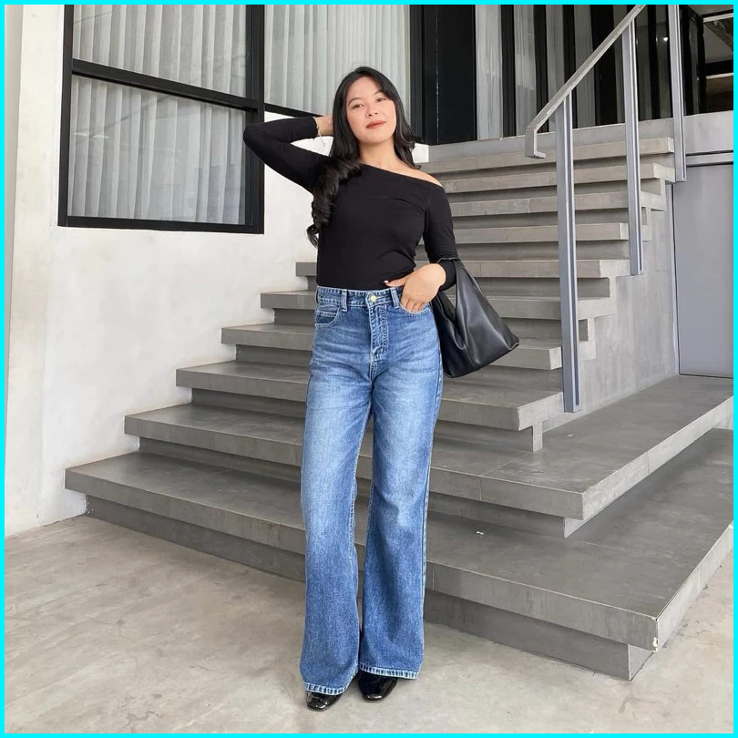Elsaga Celana Jeans Wanita Gombrong Wishker Terbaru