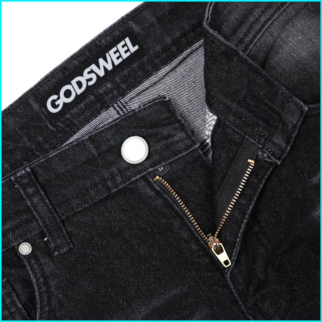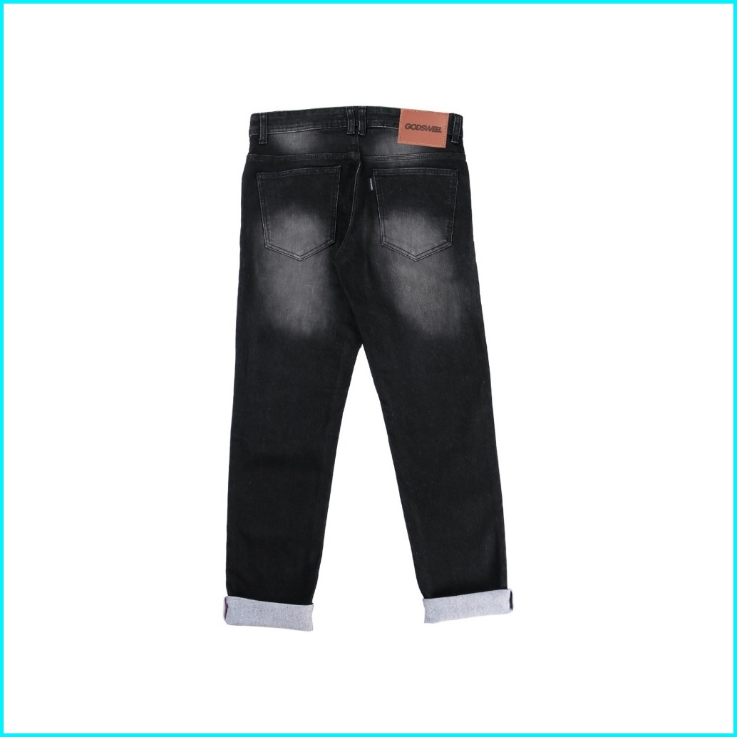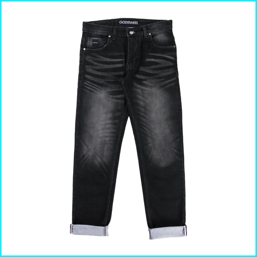 Godsweel Celana Jeans Pria Panjang Aksen Selvedge Slimfit Blackjazz Stretch