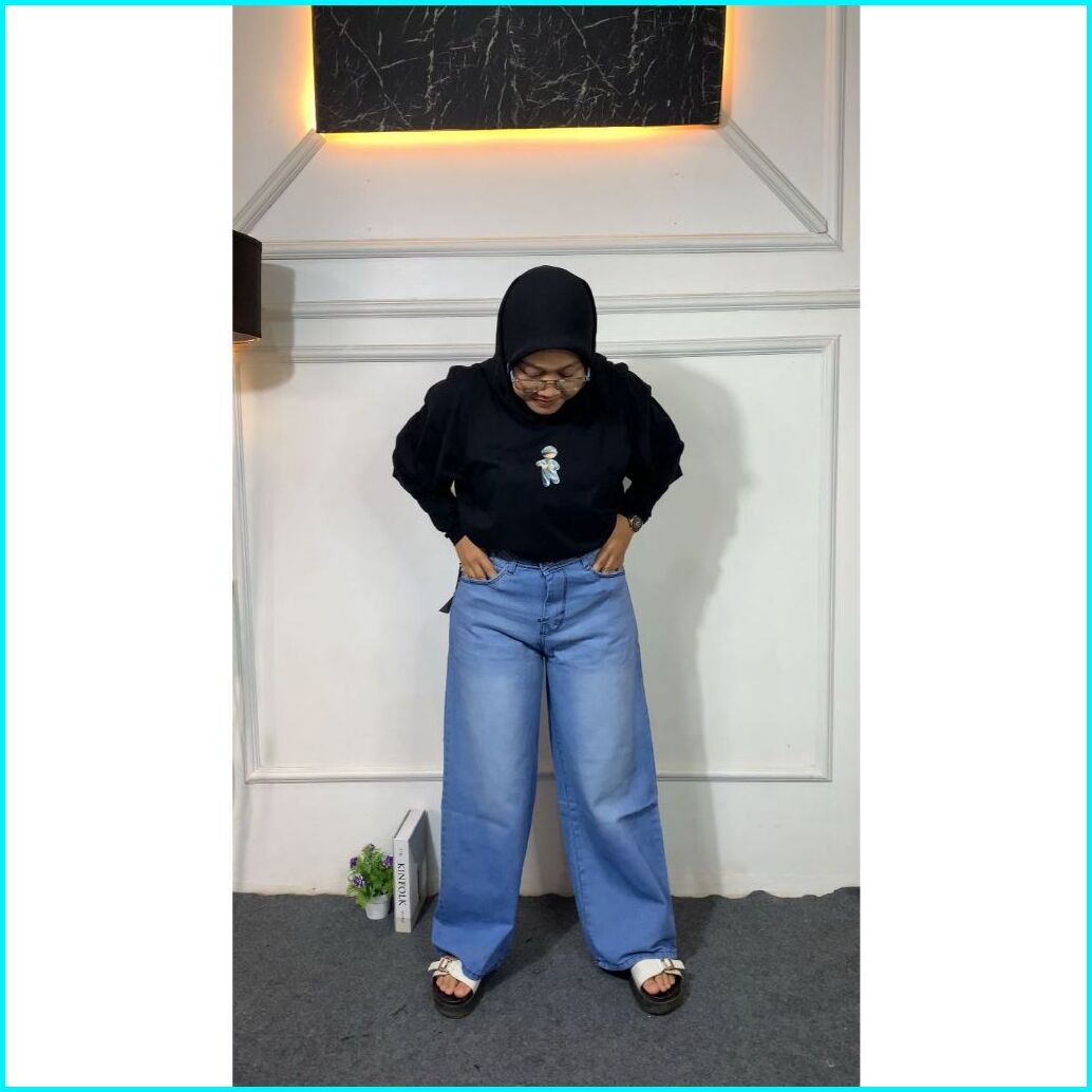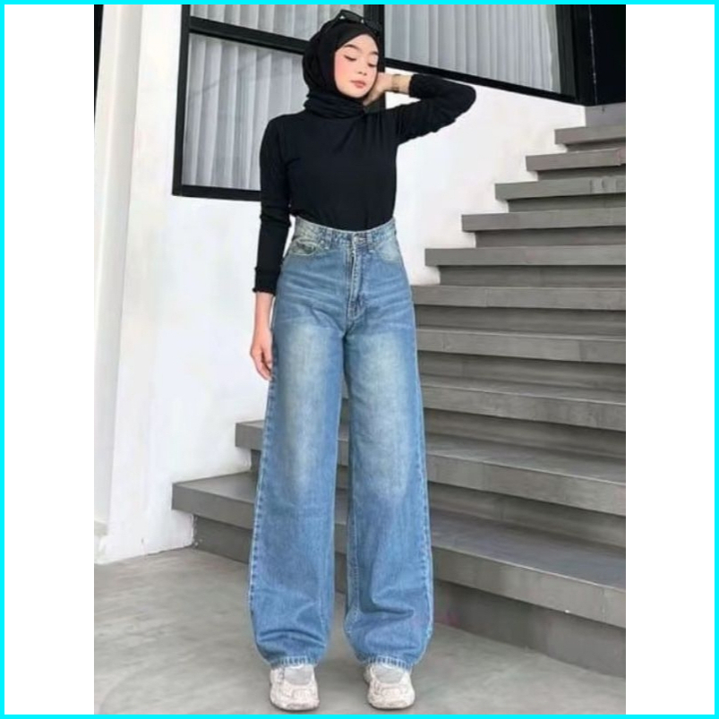 Baggy Jeans Wanita Tebal Highwaist Premium Style Oversize Korean Jumbo 27-38 Big Size