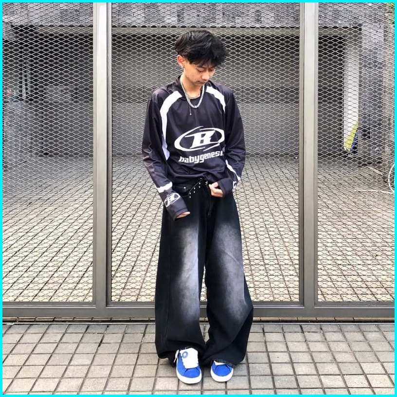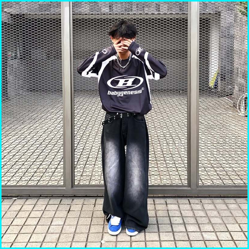 Celana Jeans Wide Leg Wisker Lebar Gombrong Skena Black Wisker Pria Loose Fit Jumbo Big Keren Bahan Denim Celana Jeans P